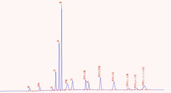 要求PAHs(溶解度超出96.0%)的色谱图: