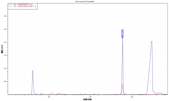 合格品TIC图(海蓝)与多溴联苯醚混标TIC图(小白)