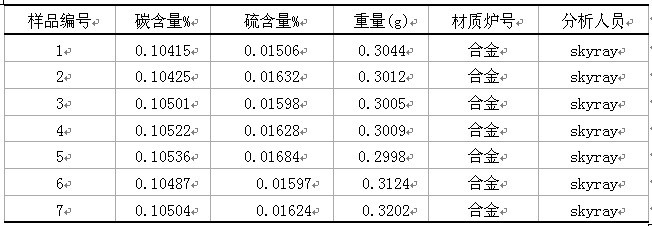 一锰钢国际标准GBW(E)010136-9901(C%:0.104,S%:0.015)用中频红外碳硫仪168型检查优秀成果下: