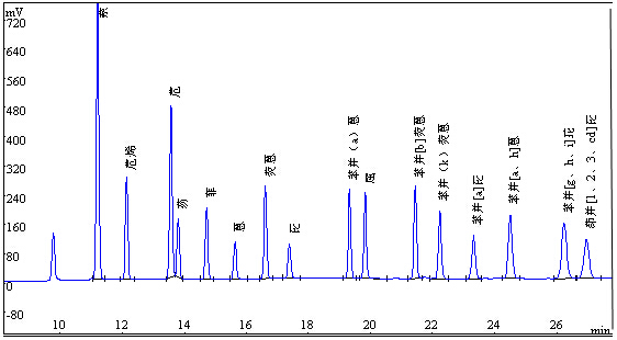 图1.16种多环芳烃规范标准硫酸铜溶液色谱图
