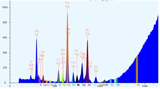 图(tu)(tu)4 EDX4500H某(mou)大气(qi)颗粒(li)物(wu)富集滤膜♚X荧光阐发(fa)谱图(tu)(tu)