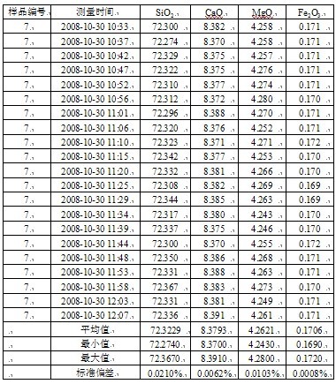 仪器测试精度检测数据:(统一样品持续测试21次的测试成果)