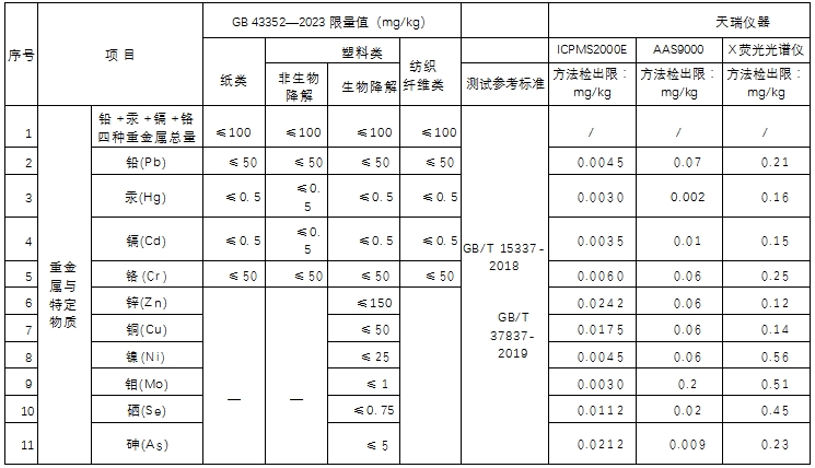 针对快递包装重金属及特定元素(除氟元素外)的检测,可经由过程EDX光谱仪停止前期的疾速无损挑选阐发,前期经由过程AAS、ICP-OES、ICP-MS停止切确定量阐发。
