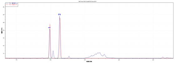 方针物在0.5ppm-10ppm线性杰出。取空缺塑胶样品加标,样品颠末正己烷超声萃取。10ppm加标程度(图5),获得比拟对劲的成果。
