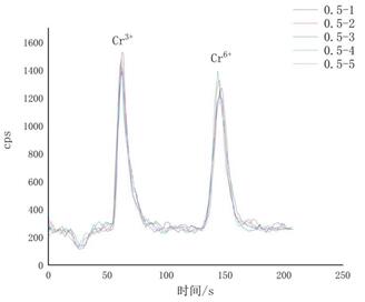 屡次进样测定浓度为0.5 µg/L Cr3+和Cr6+夹杂规范溶(rong)液(ye),停止反复性尝(chang)试,见图3: