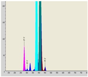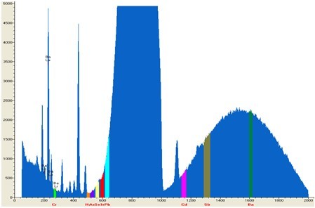 操控EDX 9000C检验仪器对小汽车辅件有机玻璃产品的样品应对检验,检验时间1秒,其检验谱图和统计数据一些图:
