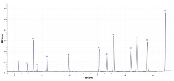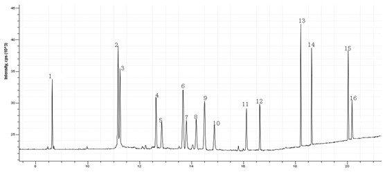图(tu)1. 16种有机磷(lin)规范(fa𒆙n)起来(lai)溶剂TIC图(tu)